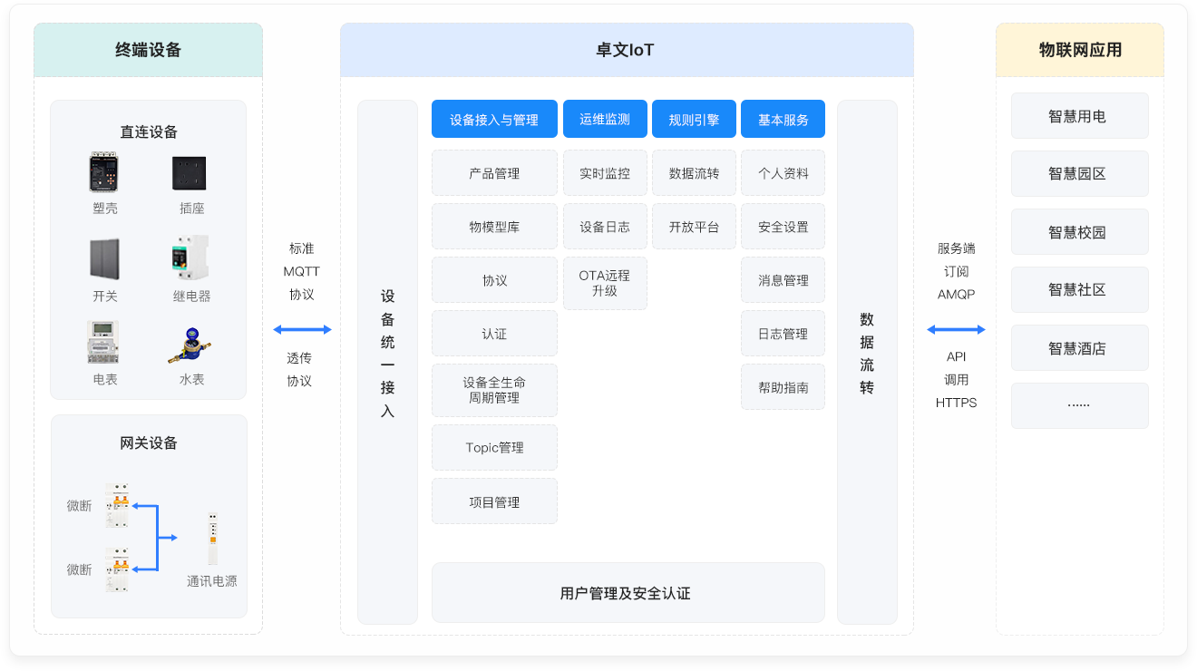 流转至客户指定服务器,快速搭建物联 网行业应用集成研发。